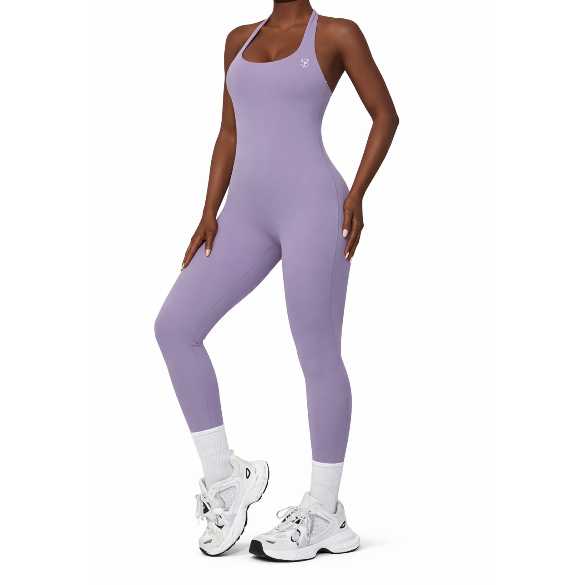 This halter top jumpsuit features built-in padding for support and a soft, stretchy leggings fit that hugs your curves while keeping you comfortable all day rather you're headed to your next leg day, hot girl walk or on a stroll with friends.