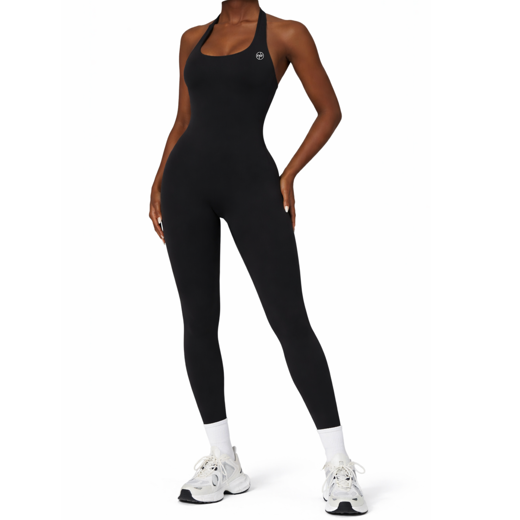 This halter top jumpsuit features built-in padding for support and a soft, stretchy leggings fit that hugs your curves while keeping you comfortable all day rather you're headed to your next leg day, hot girl walk or on a stroll with friends.