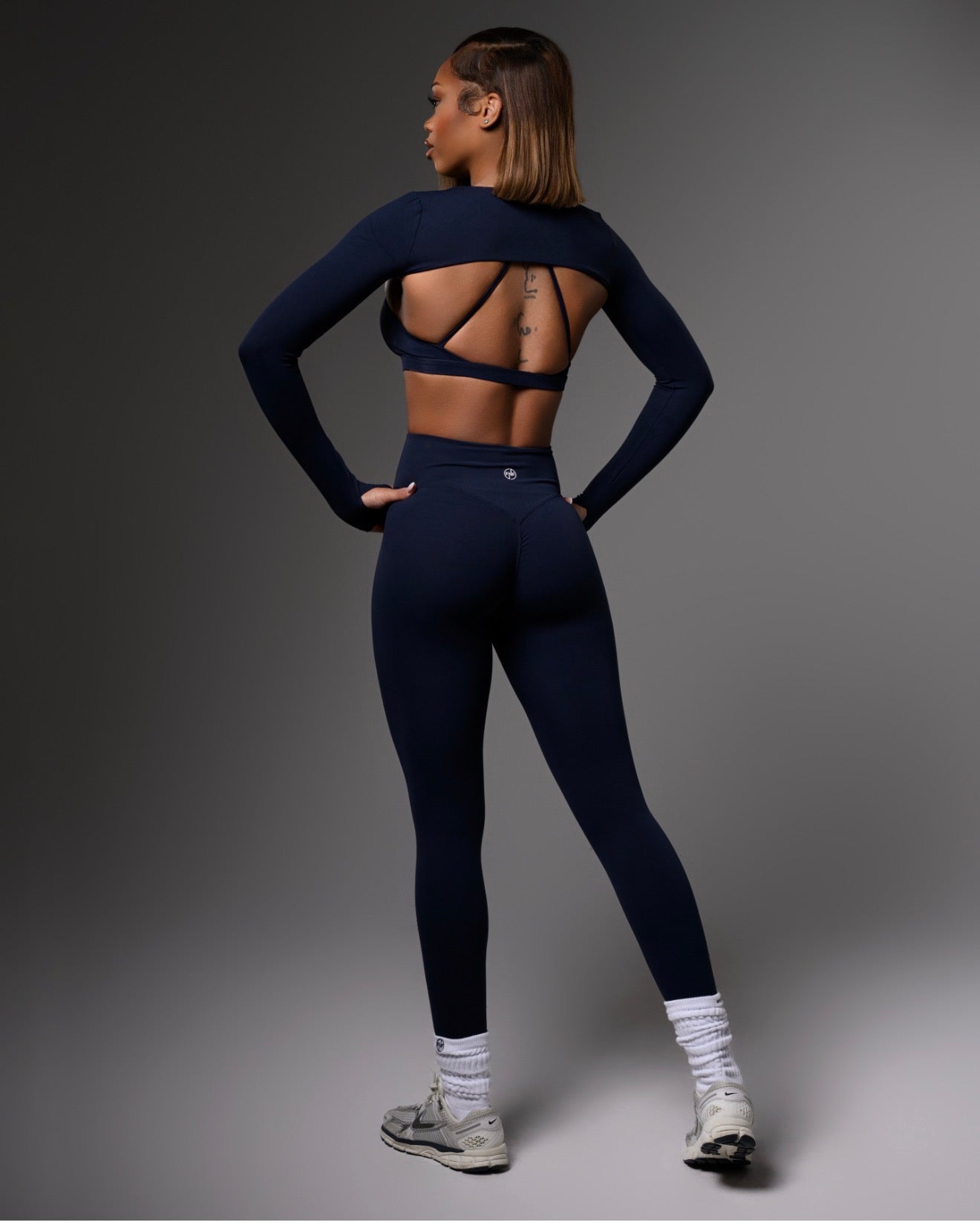 Legging material is delicate — avoid long nails and pull from the bottom for best stretch.